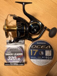15号(241lb)という太さはクロマグロの一発に耐えるための選択。100mスプール×3本で300mを確保しました。